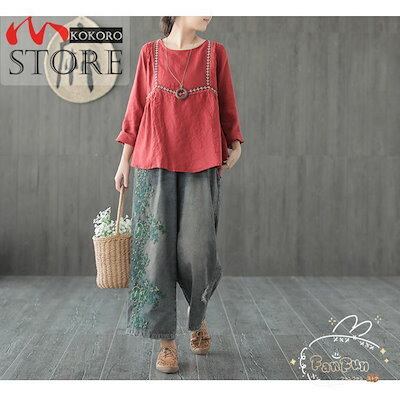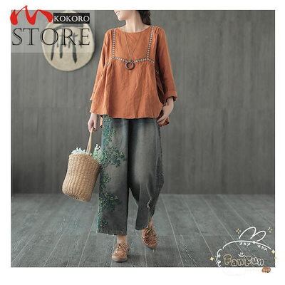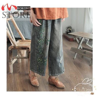 ロングパンツ レディース 秋 ジーンズ デニムパンツ 刺繍 ゆったりパンツ ワイドパンツ 着痩せ おしゃれ