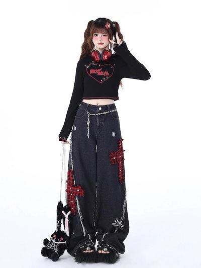 デニムパンツ スラックスパンツ ストレートジーンズ ワイドパンツ おしゃれ 春夏アメリカ パンク 刺繍 ゆったり ワイドパンツ