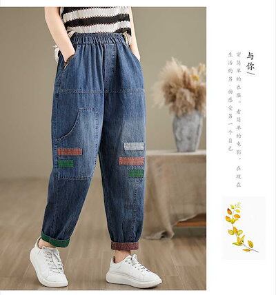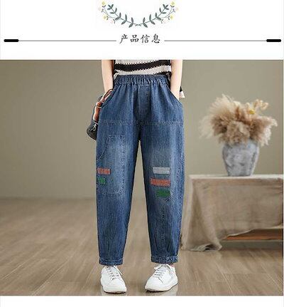 「ファットガール」 夏 刺繍 デーパードパンツ 薄手 デニムパンツ ジーンズ ゴム 体型カバー 大きいサイズ ゆったり レディース