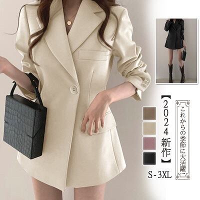 2024新作 おしゃれ 気質 通勤 ジャケット スーツ スリム見え タンクトップ アウター ラシャ 大きいサイズ レディース 卒園式 入学式 ママ大人っぽチェスターコー