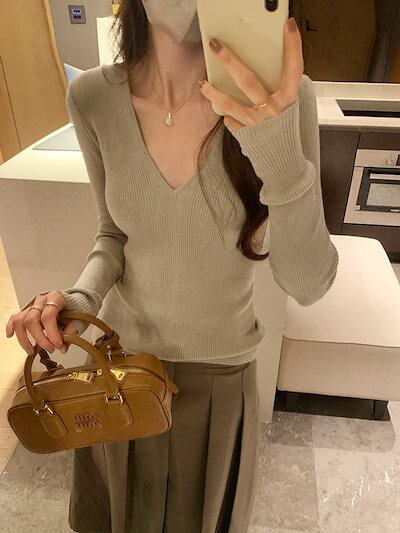 ベーシックニット シンプル Vネック ニット ジャンパー レディース 秋冬 優しい 長袖