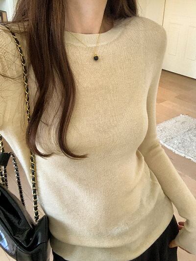 ベーシックニット 無地 レディース 秋と冬 薄手 ジャンパー ニット トップス