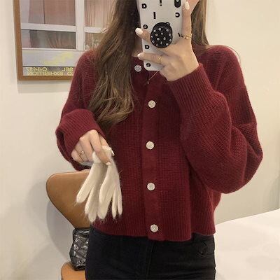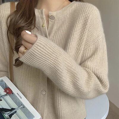 秋 冬 ニットカーディガン レディースファッション セミロング丈保温 セーターコートショート丈クルーネックレトロ ニットセーター ベーシックニット?国 2024