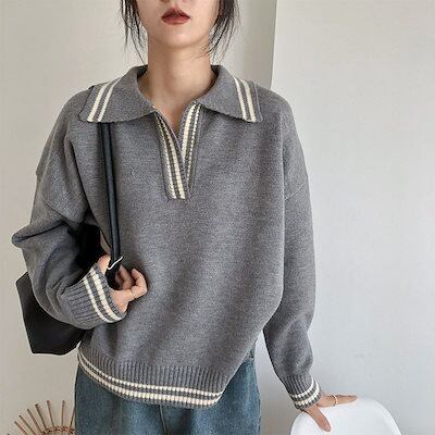 人气 新作リブニット 人気なリブニット 冬 韓国ファッション ニットセーター おしゃれデザイン感 セーター レディース ゆったり 百掛け キャンパス風ベーシックニット 流行り ニットトップス 学生 2