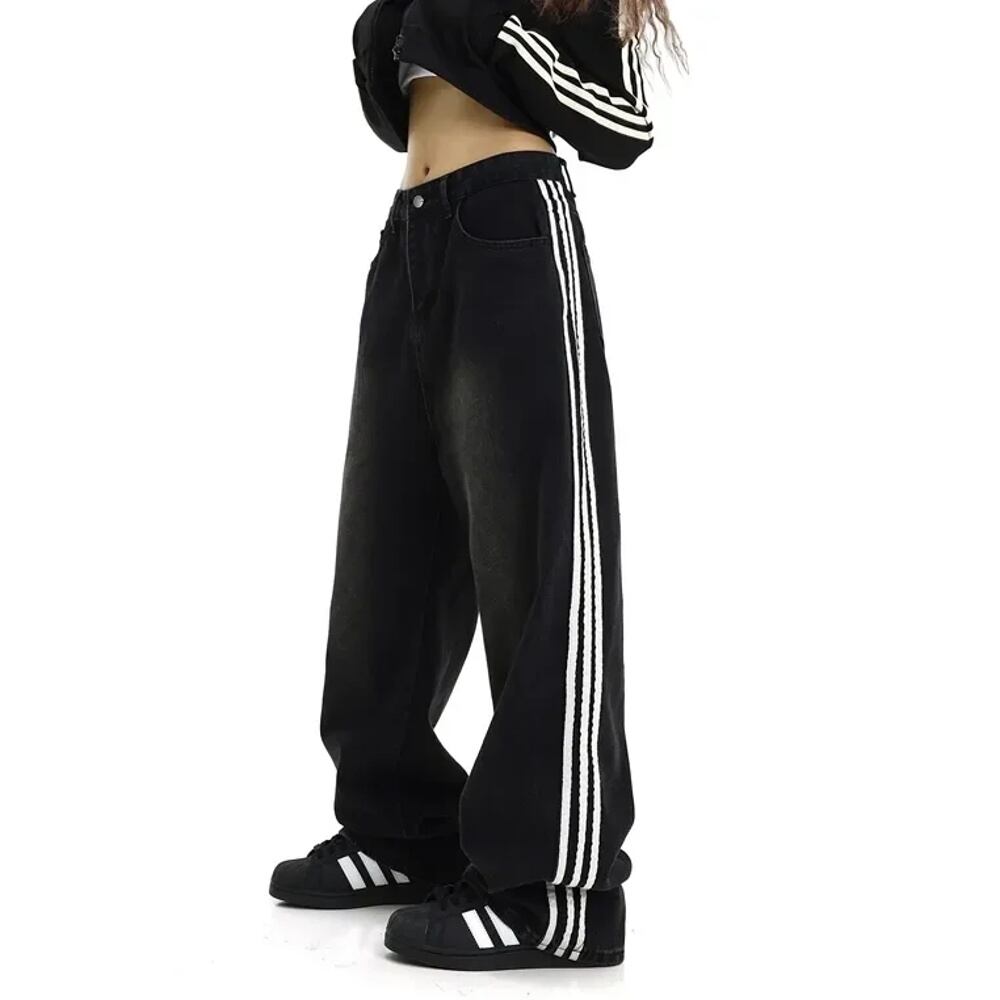 レディース原宿ストライプジーンズ,韓国ファッション,カジュアル,ストレートパンツ,クラシック,シンプル,ルーズフィット,y2k y2k ボトムス T240901115104_02