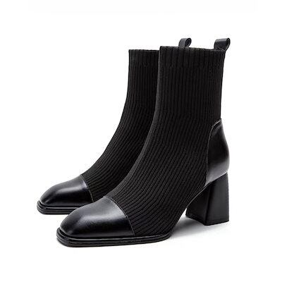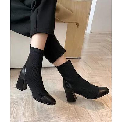 新品販売 2024新品入荷ソックス風ブーツ レディース 太ヒール