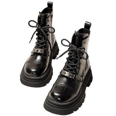 【3日以内出荷】ショートブーツ メタルロックバックル マーティンブーツ 秋 厚底 高い ブーツ レディース 韓国ファッション