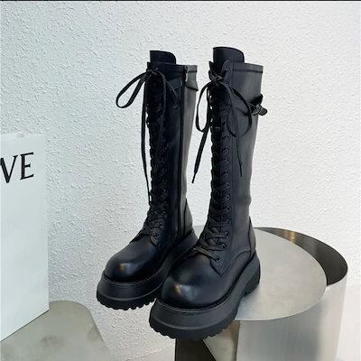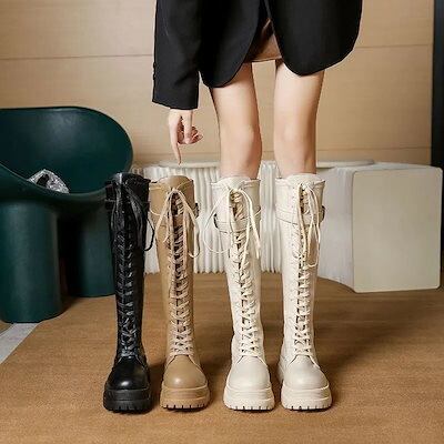 ロングブーツが復活! 秋冬ファッション レディースブーツ ブーツ女 春春 ナイトブーツフロントバンドバックジッパー ブーティー 美脚 歩きやすい